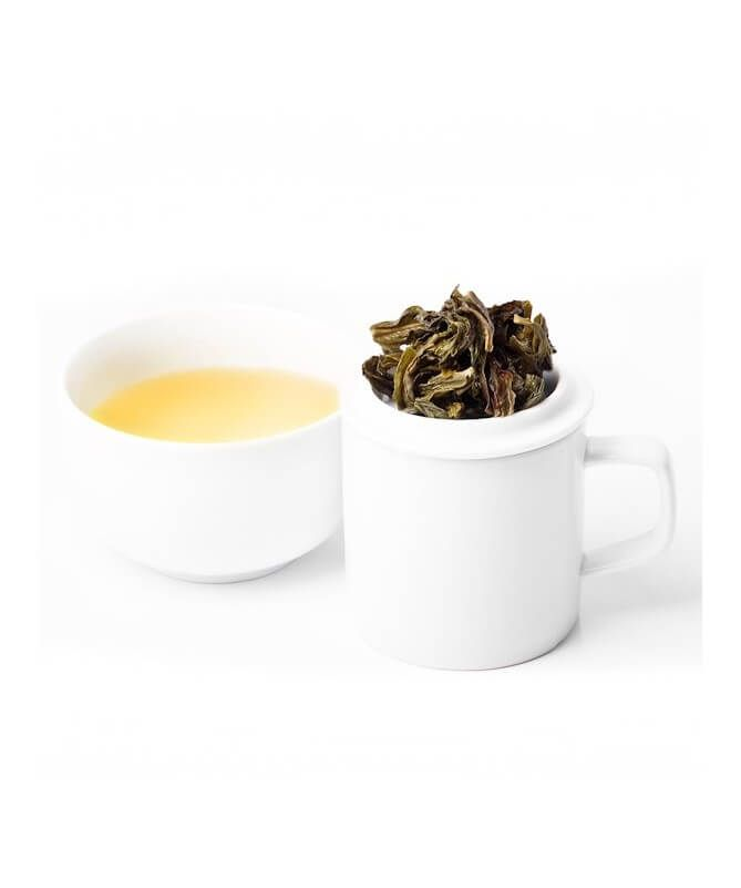 El té Oolong Pouchong es una variedad de té Oolong originario de Taiwán que se caracteriza por su sabor suave y delicado, con un aroma floral y afrutado. Este té se elabora a partir de hojas jóvenes de la planta Camellia sinensis que se oxidan y fermentan parcialmente, pero a diferencia de otros tés Oolong, se procesa de forma más suave y delicada para preservar su sabor suave y fresco. El té Oolong Pouchong es un té de baja oxidación, lo que significa que se encuentra en el punto intermedio entre el té verde y el té negro. El resultado es una infusión ligera y aromática con un sabor suave y delicado, ideal para aquellos que buscan un té con un sabor más suave y menos amargo que otros tés. El Oolong Pouchong es considerado uno de los tés más elegantes y refinados del mundo, y es una excelente opción para aquellos que buscan disfrutar de un té suave y de alta calidad.