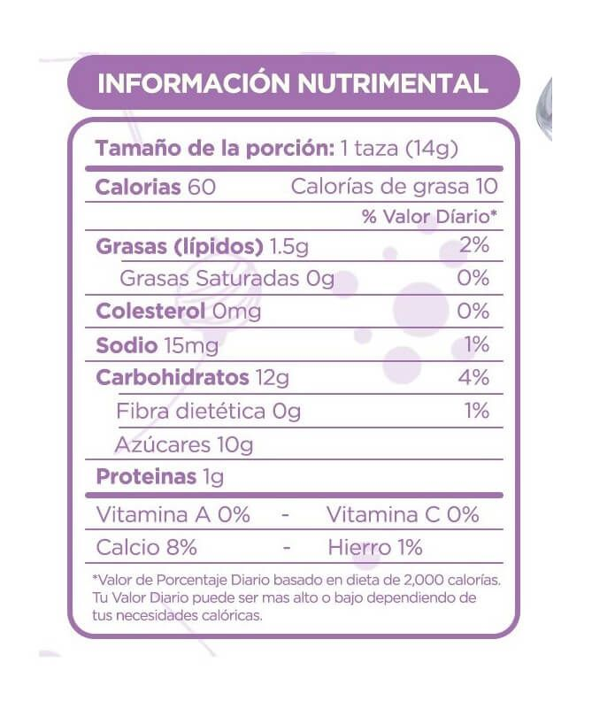 Presentacion en Bolsa de 3lb con la que puede preparar 8 litros de frappe o té en la rocas. Ideal para cafeterias con alto flujo ya que se encuentra endulzado con azucar de Caña y leche baja en grasa lo que hace la preparacion sumamente sencilla. Agregar 25g por cada medio litro de agua o leche. Para preparar frappe agregar 12oz de hielo, 4oz de agua y 25g(4 cucharadas usando nuestra cuchara doble) de taro instantáneo.